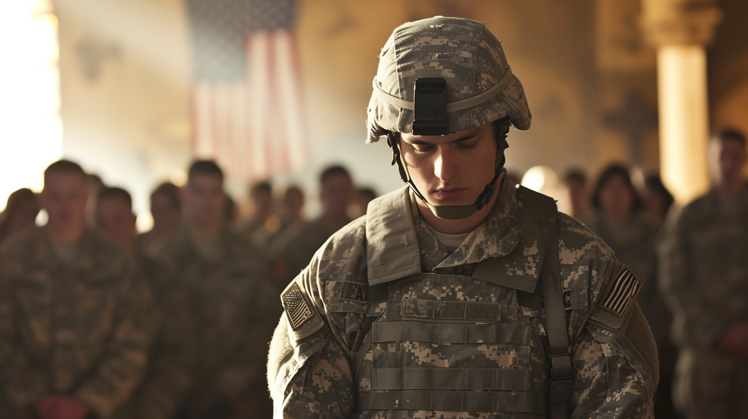 전투복을 입은 채 민간인들 앞에 서면 행동을 조심하게 된다. 그런데…… 평소 하나님 앞에서는?